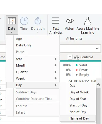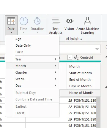 I created several other Columns like “Month Name”, “Day Name”, and a conditional Column named “Age Categories”. To categorize the ages into groups, I used a conditional column.