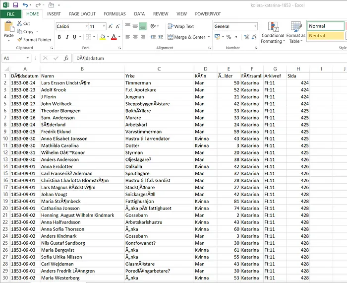 This analysis therefore seeks to obtain information about the outbreak of cholera in Stockholm in the year 1853.